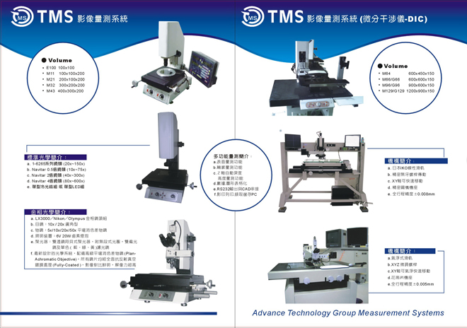 台灣顯微影像量測系統,集繪圖、測量、檢測功能為一體,除了功能強大與齊備,操作介面更符合人性化設計,簡單易上手。台灣顯微擁有陣容堅強的研發團隊,除了在測繪軟體的研發上精益求精,同時以歐美規生產管理模式,進行儀器生產及品質管制;不但讓整個量測系統的軟硬體作最佳的整合外,同時也使成本與售價更能迎合市場需求,使眾多的客戶群能以最低廉與優惠的價格,取得最具信度與效度的的量測設備,主要做的產品有投影機、2.5D投影機、二次元、三次元、影像量測設備、工具顯微鏡、金相顯微鏡、觸碰面板量測專用機等等‧‧‧